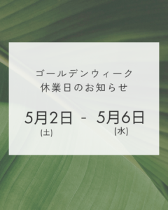 誠に勝手ではございますが、5月2日(土)~5月6日(水)までの期間をゴールデンウィーク休業とさせていただきます。